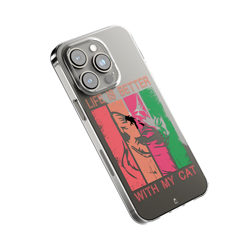 Show off your love for your feline companion with the "Life is better with my cat" clear silicone case. Simple, yet stylish, this case features a cute paw print design and is perfect for any "roars club" member. Keep your phone protected and express your passion in one simple step!