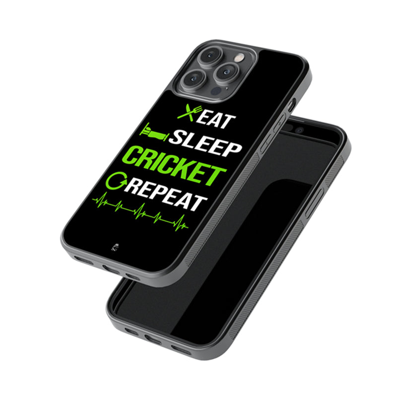 Eat Sleep Cricket Repeat Glossy Metal Case