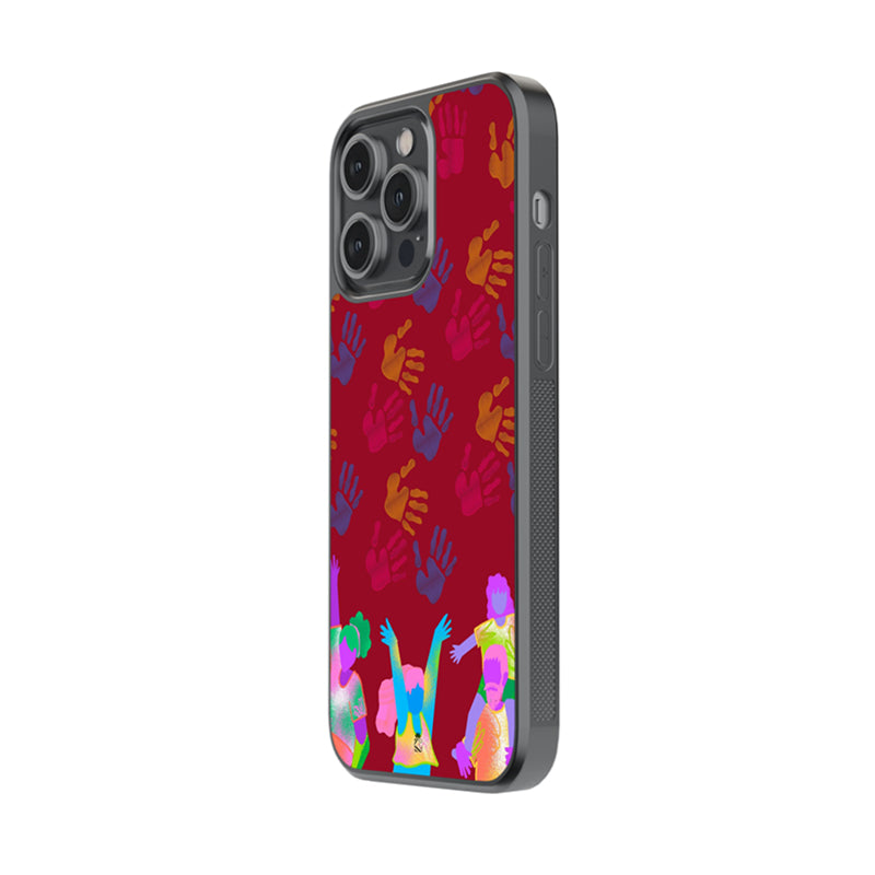 Protect your phone in style with our Colourful Handprints Glossy Metal Case! The vibrant handprint design adds a pop of color to your device, while the durable glass material keeps it safe from scratches and impacts. Show off your love for the Roars club with this unique and eye-catching phone case.
