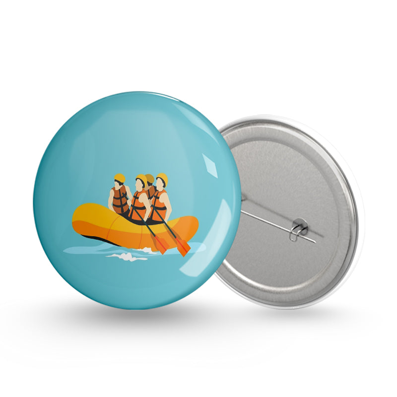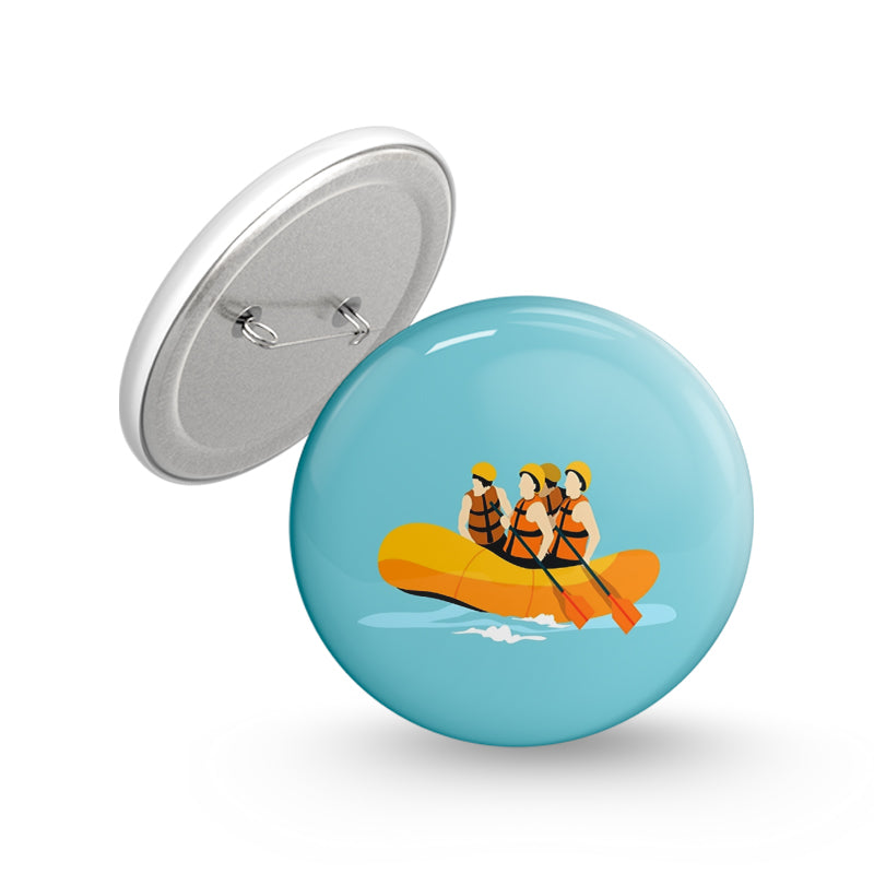 River Rafting Pin-back Button Badge